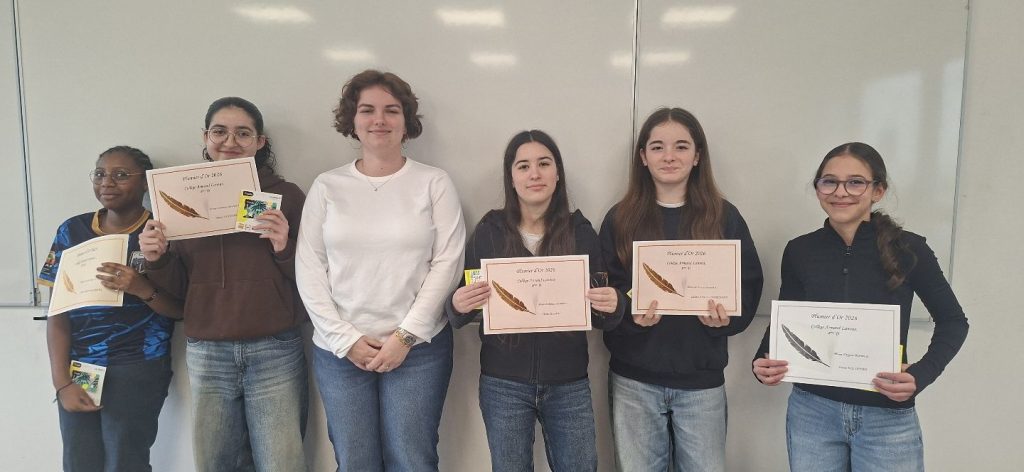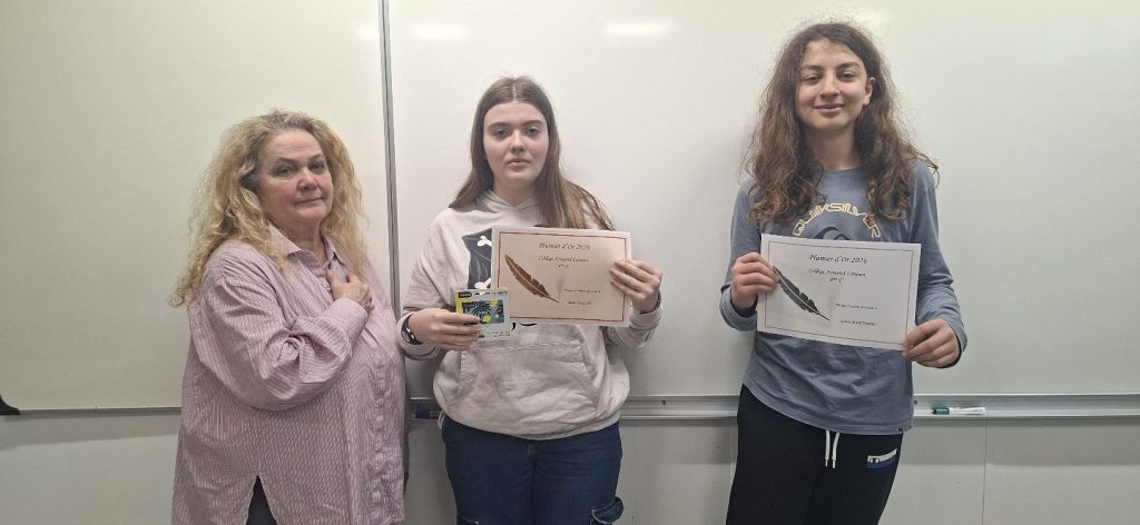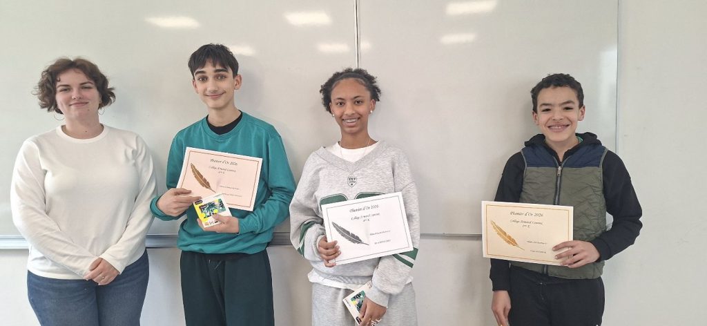 Les trois lauréats de chaque classe ont remporté une carte cadeau offerte par le FSE du Collège et un beau diplôme : ‘’Plumier d’Or, d’Argent, ou de Bronze’’ à mentionner dans leur CV !