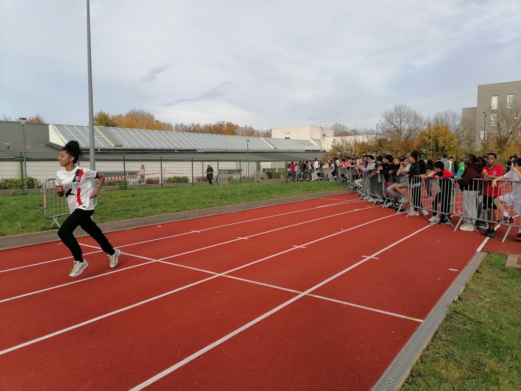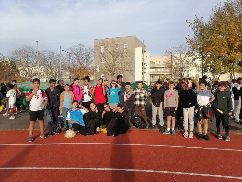 Rendez-vous à 12h45 pour vingt-deux élèves du collège, direction le stade Collette Besson de Lognes pour y rencontrer trois cents autres élèves en provenance des dix autres collèges du district (Collège Jean Wiener, La Mallière, Le Luzard, Le Segrais, Louis Aragon, Nellie Bly, Pablo Picasso, Schoelcher, et Van Gogh).
