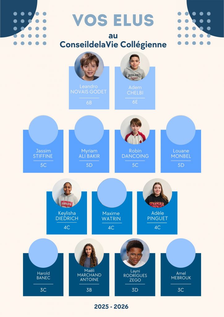 Voici donc vos représentants au Conseil de la Vie Collégienne pour l’année scolaire 2025-2026 :